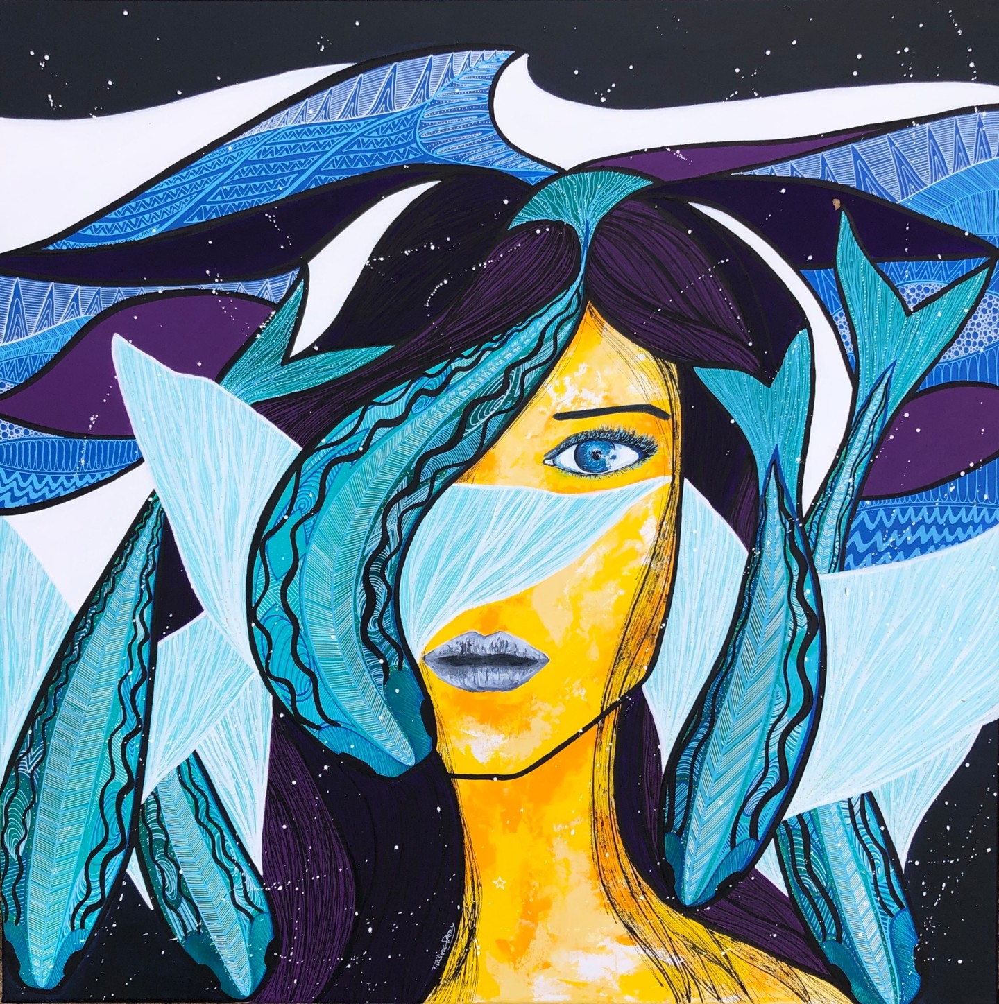 - Pintura indígena dos nativos americanos, com cores terrosas, símbolos e espiritualidade.